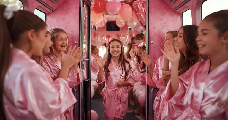 The birthday girl wears a “Birthday Princess” robe, and her guests wear “Birthday Squad".
